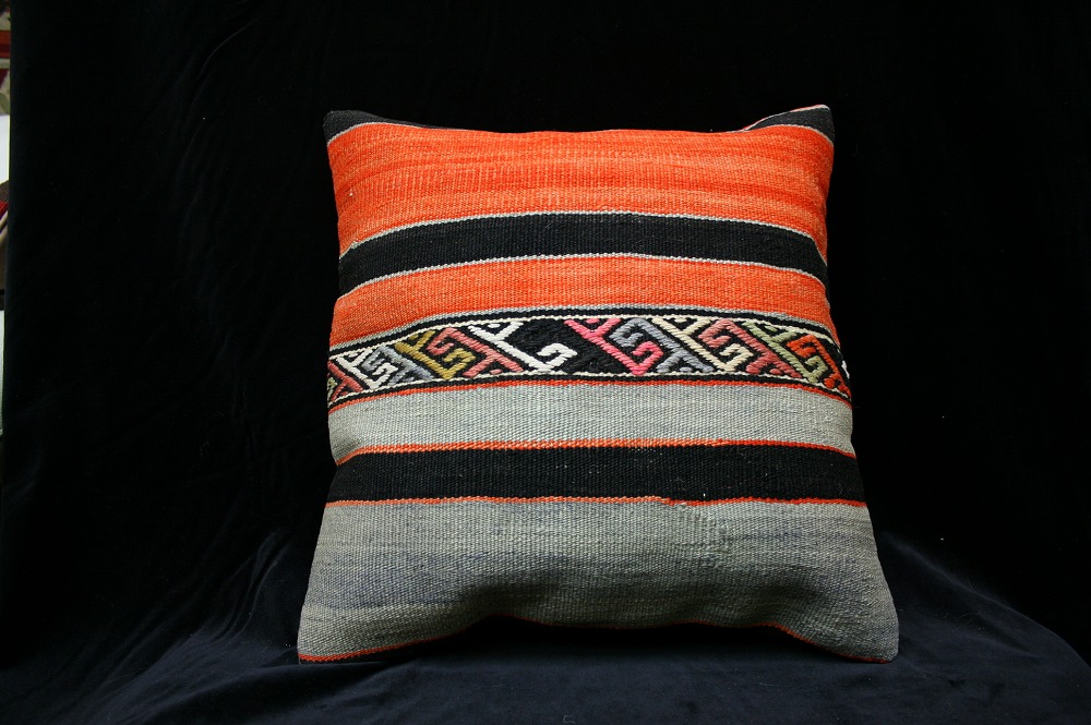 オールドキリムを使用して作られた、エキゾチックなクッションカバー。オールドキリムの素敵な部分をカットして使用されています。(表面はオールドキリム、裏側はコットンの布地です)お手持ちの家具やキリムと組み合わせてお楽しみください。このタイプのものは、なかなか数が少な く、品質・価格・品揃え共に日本国内屈指であると自負しています。この商品は現地でクリーニングしてから輸入していますのでご安心ください。