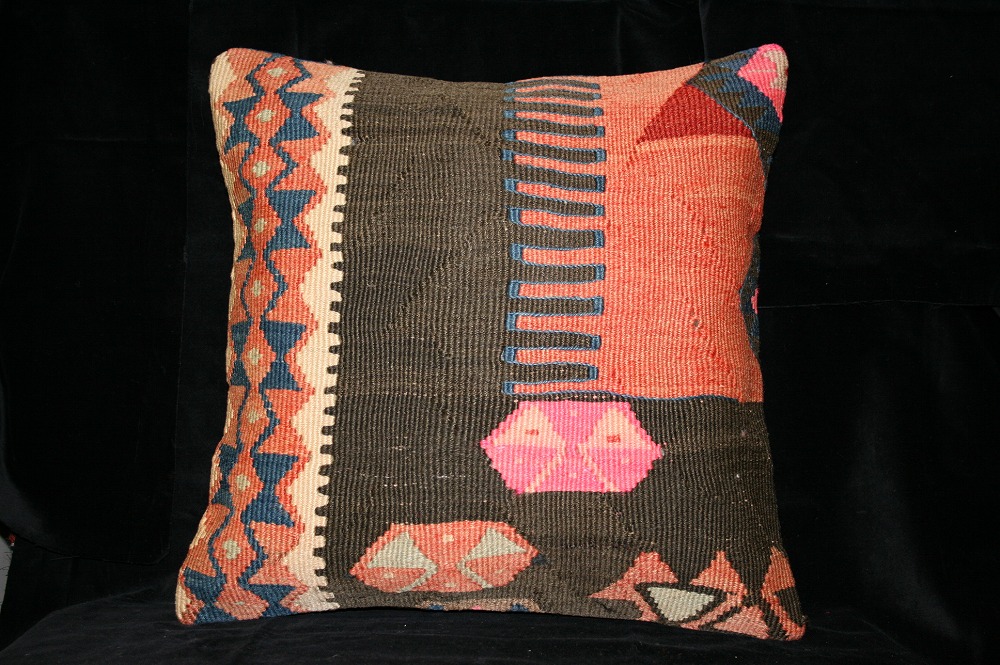 キリムクッションカバー[198] オールドキリムを使用して作られた、エキゾチックなクッションカバー。オールドキリムの素敵な部分をカットして使用されています。(表面はオールドキリム、裏側はコットンの布地です)お手持ちの家具やキリムと組み合わせてお楽しみください。このタイプのものは、なかなか数が少な く、品質・価格・品揃え共に日本国内屈指であると自負しています。この商品は現地でクリーニングしてから輸入していますのでご安心ください。