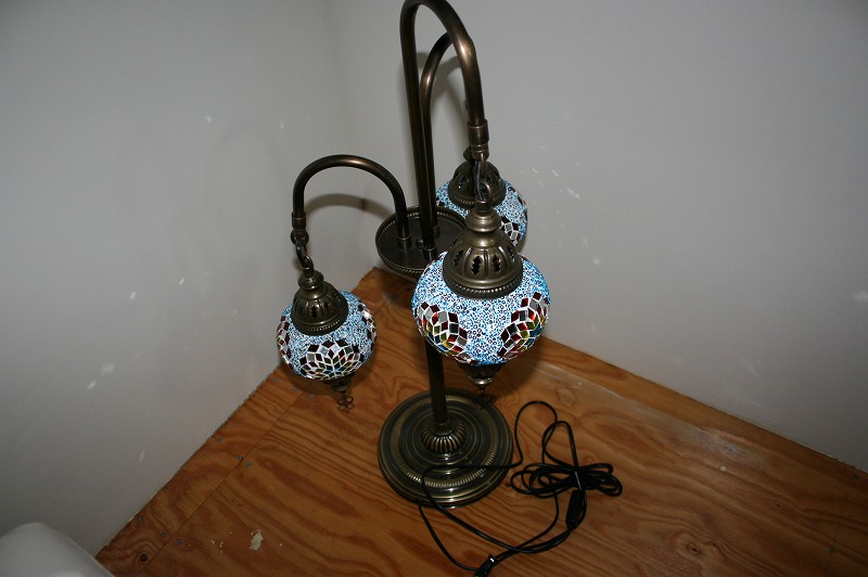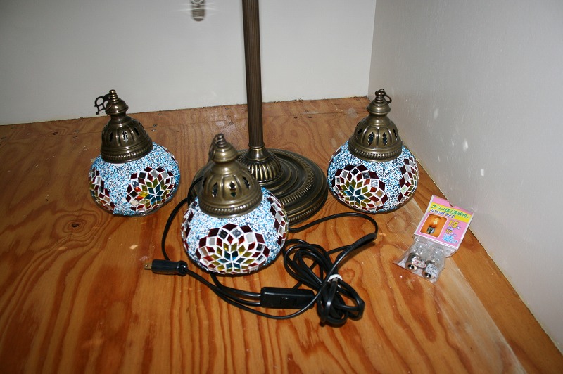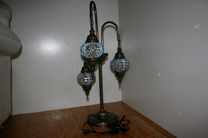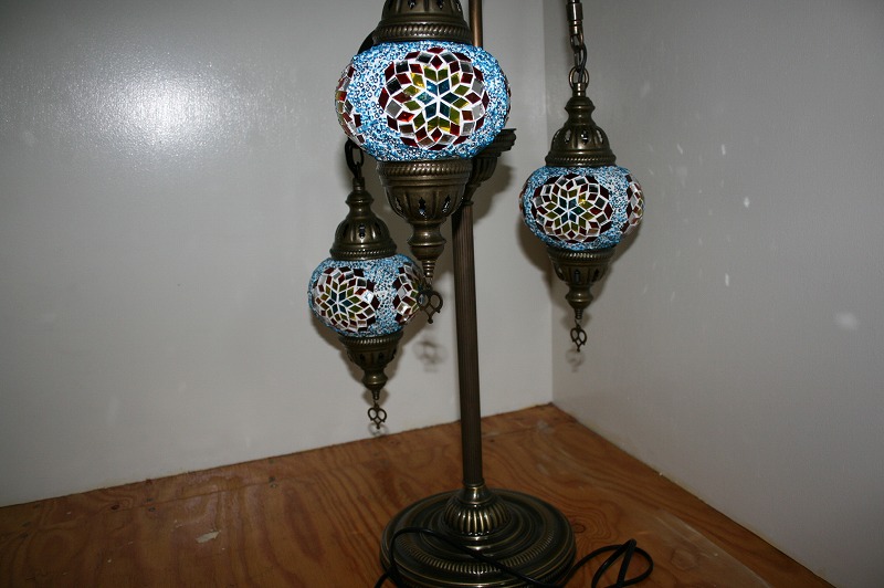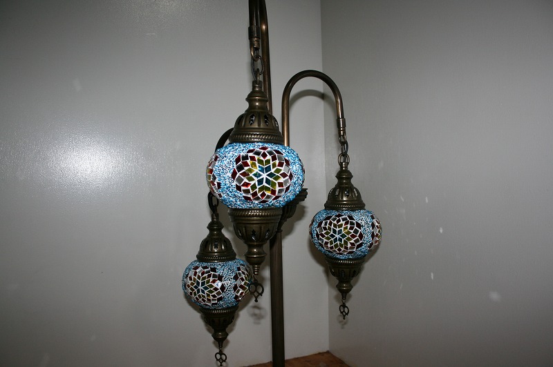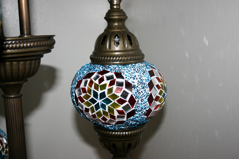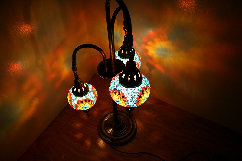 世界中のセレブも愛用、エキゾチックなトルコ製のモザイクランプスタンドシャンデリア3灯。