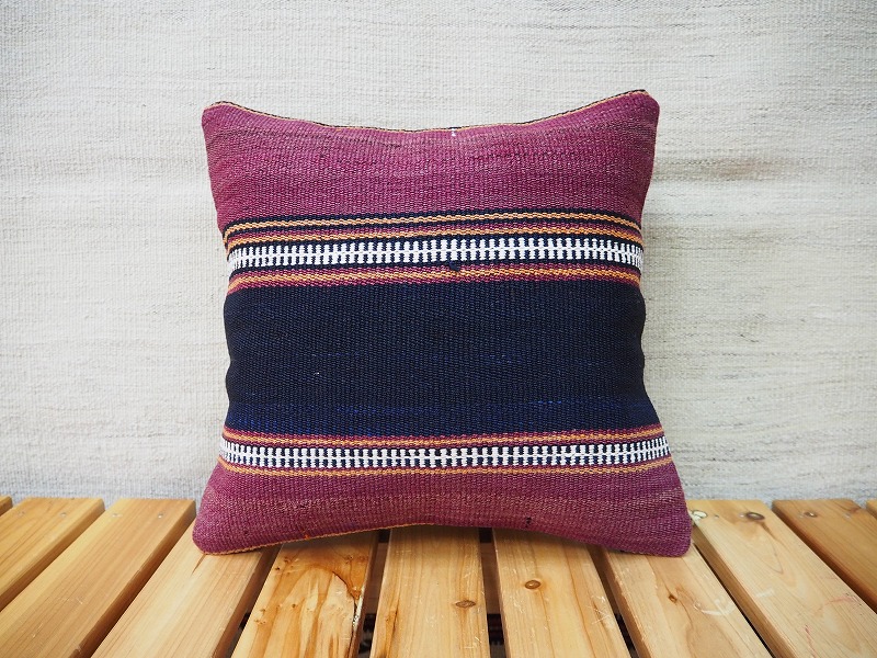 キリムクッションカバーオールドキリムを使用して作られた、エキゾチックなクッションカバー。オールドキリムの素敵な部分をカットして使用されています。(表面はオールドキリム、裏側はコットンの布地です)お手持ちの家具やキリムと組み合わせてお楽しみください。このタイプのものは、なかなか数が少な く、品質・価格・品揃え共に日本国内屈指であると自負しています。