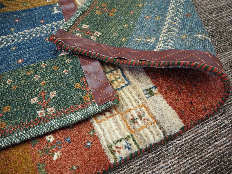 手織り-手紡-草木染めです。ギャッベ絨毯とは、イランの遊牧民の女性たちが織るウール100%の手織りの草木染絨毯です。ギャッベ(Gabbeh)は2センチ約の長い毛足を持つ分厚い絨毯のことを指します。100%天然素材ですので、べとつくことなくサラッとし、1年を通して使っていただけます。こちらのサイズは、玄関マットや、ベットの脇や、ソファーの前など、幅広く使っていただけます。