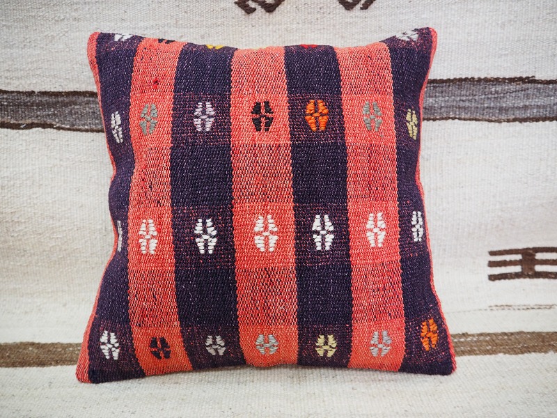 キリムクッションカバーオールドキリムを使用して作られた、エキゾチックなクッションカバー。オールドキリムの素敵な部分をカットして使用されています。(表面はオールドキリム、裏側はコットンの布地です)お手持ちの家具やキリムと組み合わせてお楽しみください。このタイプのものは、なかなか数が少な く、品質・価格・品揃え共に日本国内屈指であると自負しています。