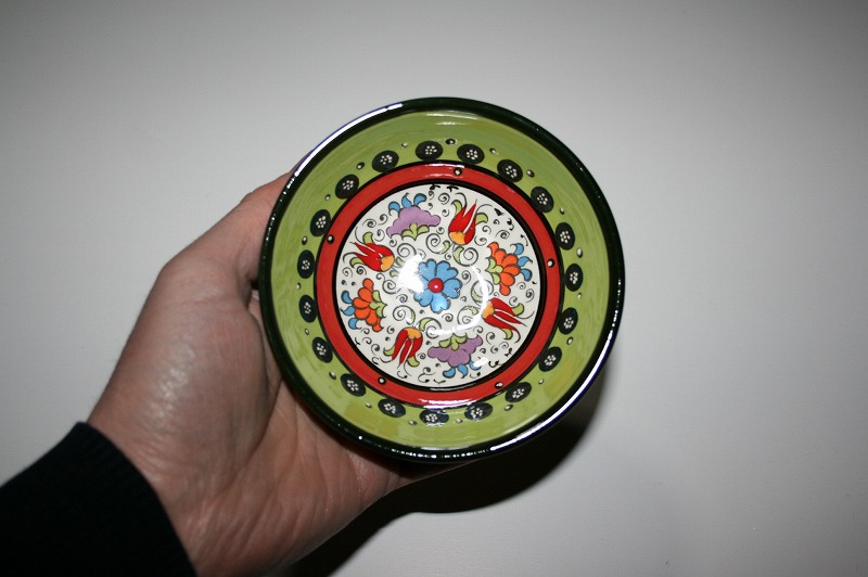女流陶芸家“ニメット(Nimet)さん”の作品です。トルコの国花チューリップ、カーネーションなどのカラフルなデザインが特徴です。アクセサリー・お菓子入れ、フルーツを盛ったりと使い道はさまざま。もちろんインテリアとしてもお楽しみいただけます。見ているだけでも気持ちが華やぎ、楽しくなる作品です。
