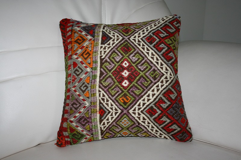 オールドキリムは、子羊の毛を手紬ぎで糸を作り、その糸を草木染にして人の手で丁寧に平織りされたトルコ遊牧民発祥の伝統的な織物です。オールドキリム一枚一枚は世界に一つだけの作品。表側はオールドキリム、裏側はコットンの布地です。ソファ、椅子、ベッドや床に敷いたキリムと組み合わせてお楽しみください。