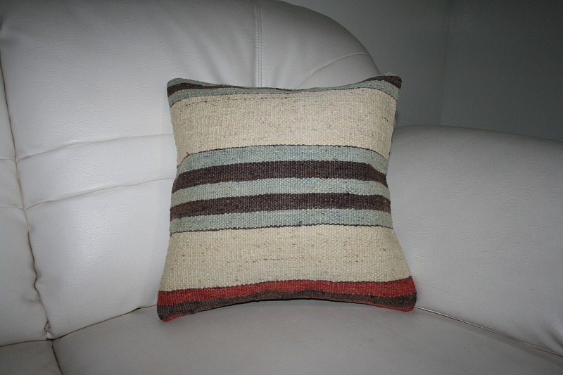 オールドキリムは、子羊の毛を手紬ぎで糸を作り、その糸を草木染にして人の手で丁寧に平織りされたトルコ遊牧民発祥の伝統的な織物です。オールドキリム一枚一枚は世界に一つだけの作品。表側はオールドキリム、裏側はコットンの布地です。ソファ、椅子、ベッドや床に敷いたキリムと組み合わせてお楽しみください。
