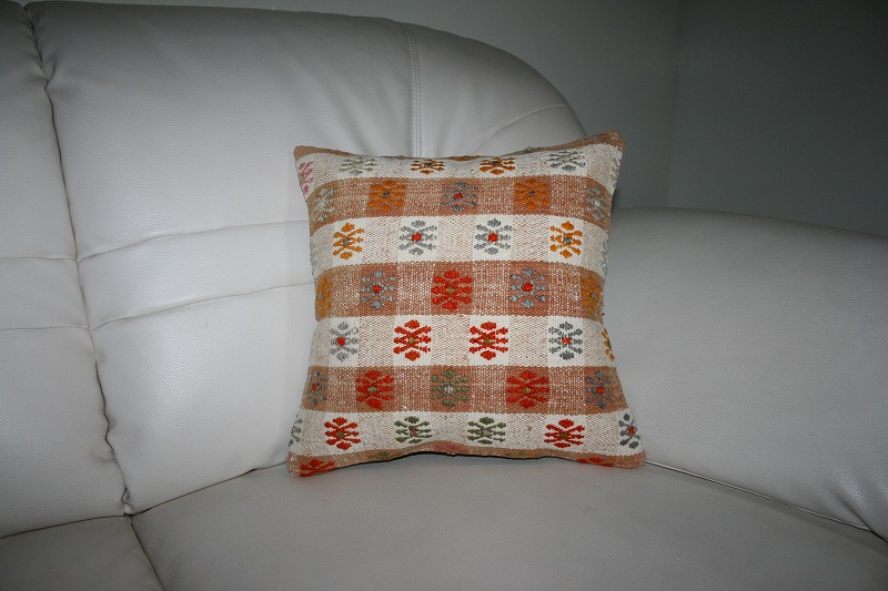 オールドキリムは、子羊の毛を手紬ぎで糸を作り、その糸を草木染にして人の手で丁寧に平織りされたトルコ遊牧民発祥の伝統的な織物です。オールドキリム一枚一枚は世界に一つだけの作品。表側はオールドキリム、裏側はコットンの布地です。ソファ、椅子、ベッドや床に敷いたキリムと組み合わせてお楽しみください。