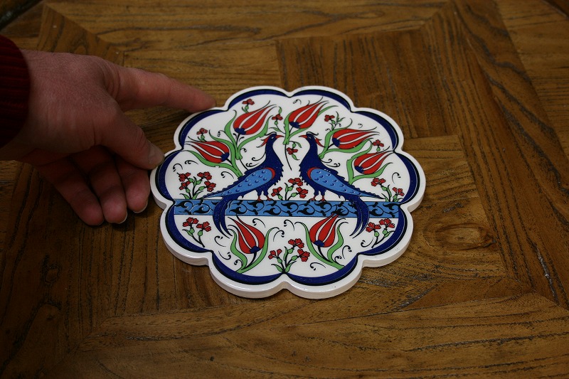 kabt244【新品】トルコ/プリント鍋敷き,陶器で知られる町,トルコのキュタフヤで作られた、プリント鍋敷き。ティーポットなどを置いていただいたり、プレートス タンドに立てて、インテリアとしてもお楽しみいただけます。 トルコ国花、カーネーションやチューリップのクラシカルなデザインが特徴です。