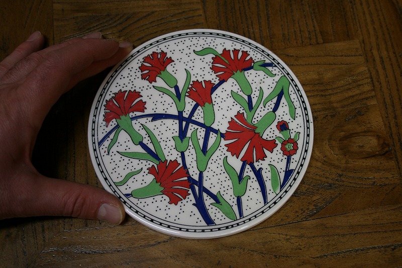 kabt253【新品】トルコ/プリント鍋敷き,陶器で知られる町,トルコのキュタフヤで作られた、プリント鍋敷き。ティーポットなどを置いていただいたり、プレートス タンドに立てて、インテリアとしてもお楽しみいただけます。 トルコ国花、カーネーションやチューリップのクラシカルなデザインが特徴です。