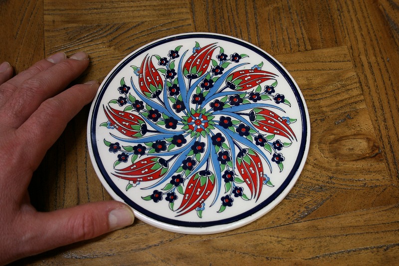 kabt259【新品】トルコ/プリント鍋敷き,陶器で知られる町,トルコのキュタフヤで作られた、プリント鍋敷き。ティーポットなどを置いていただいたり、プレートス タンドに立てて、インテリアとしてもお楽しみいただけます。 トルコ国花、カーネーションやチューリップのクラシカルなデザインが特徴です。
