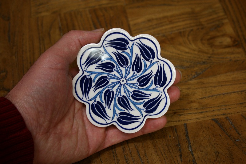 kabt238【新品】トルコ/プリントコースター,陶器で知られる町,トルコのキュタフヤで作られた、プリントコースター。ティーポットなどを置いていただいたり、プレートス タンドに立てて、インテリアとしてもお楽しみいただけます。 トルコ国花、カーネーションやチューリップのクラシカルなデザインが特徴です。