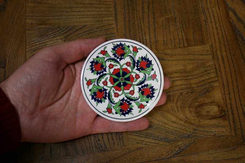 kabt288【新品】トルコ/プリントコースター,陶器で知られる町,トルコのキュタフヤで作られた、プリントコースター。ティーポットなどを置いていただいたり、プレートス タンドに立てて、インテリアとしてもお楽しみいただけます。 トルコ国花、カーネーションやチューリップのクラシカルなデザインが特徴です。