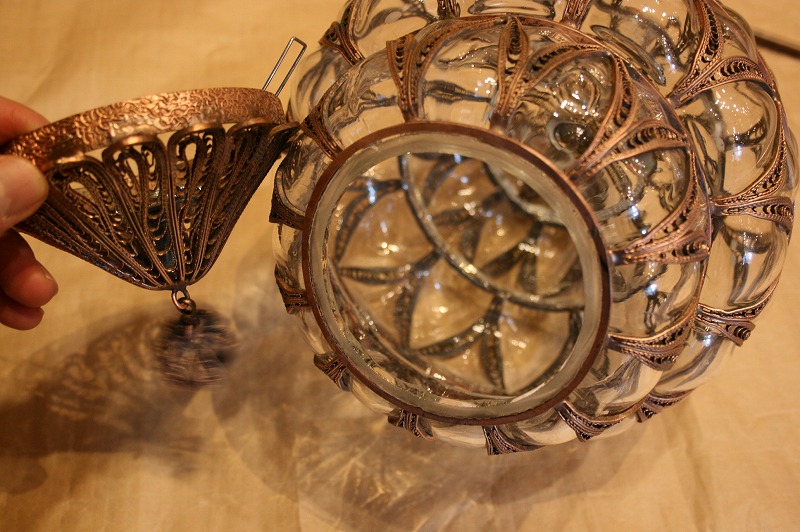 トルコランプbal231,世界中のセレブも愛用、エキゾチックなトルコ製のクラックガラスランプ。クラックとは「ひび割れ」の意味で、このランプにはガラス部にクラック加工を施してあるため、幻想的でやわらかに灯ります。豪華で美麗なあかりを、あなたのお部屋に!古くからトルコに伝わる伝統のデザイン、そしてランプの装飾部には、ひとつひとつ手作業で銅細工をあしらっています。そしてこのリーズナブルなプライス、どれをとっても大満足!世界に1つの逸品です。