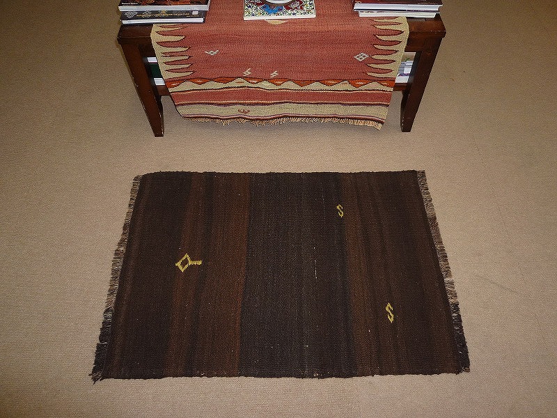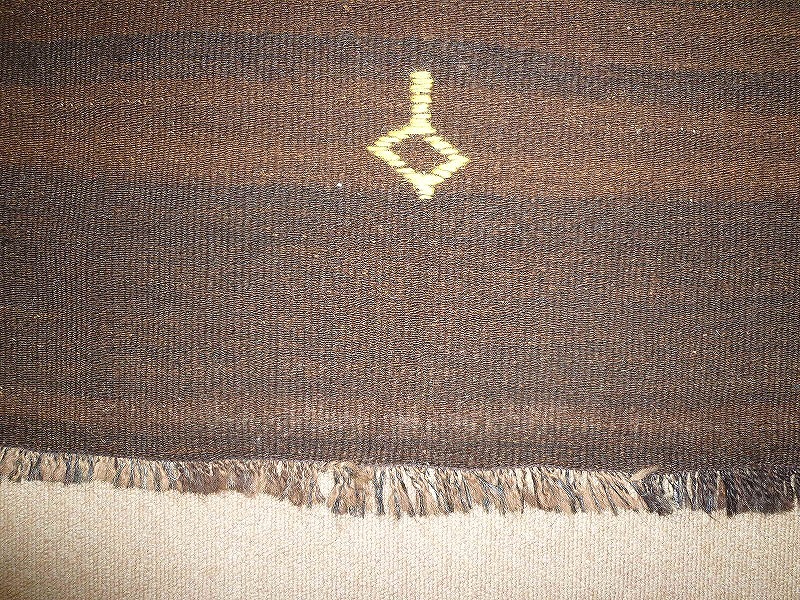 [cuv37]小麦や豆など大切なものを入れるために織られたキリム。このキリムは、袋の裏側に当たる部分です。染めていない羊毛の色を生かして織られており、自然な羊毛の濃淡を楽しめる一品です。モダンな色合いで、合わせやすいキリム。しっかりとした織りで、比較的よごれにくいので、いろいろな場所にお使いいただけます。使われた様子はなく、ほとんどダメージはありません。ふさの根元の部分は、横糸が出てこないように丁寧に仕上げています。リーズナブルなプライスでご満足いただけると思います。