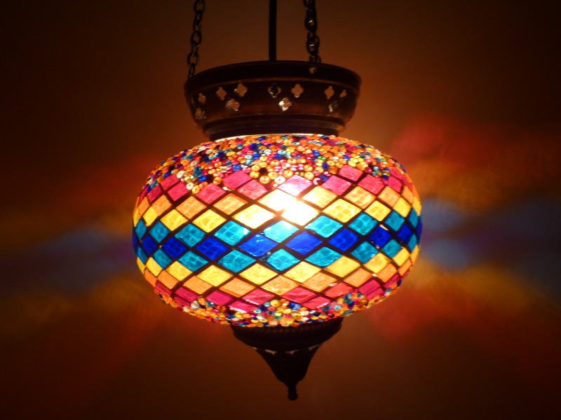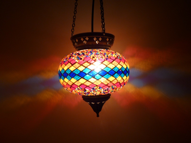 豪華で美麗なあかりを、あなたのお部屋に!古くからトルコに伝わる、伝統のデザイン、モザイクタイルを手作業で施したハンドメイド。そしてこのリーズナブルなプライス、どれをとっても大満足!お隣に差がつく、世界に1つの逸品です。ランプの付け方について