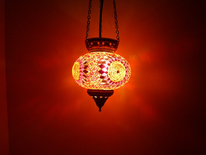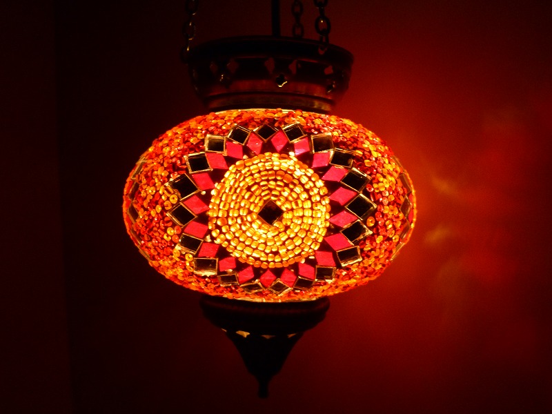 豪華で美麗なあかりを、あなたのお部屋に!古くからトルコに伝わる、伝統のデザイン、モザイクタイルを手作業で施したハンドメイド。そしてこのリーズナブルなプライス、どれをとっても大満足!お隣に差がつく、世界に1つの逸品です。ランプの付け方について