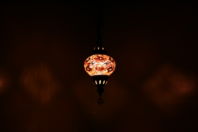 豪華で美麗なあかりを、あなたのお部屋に!古くからトルコに伝わる、伝統のデザイン、モザイクタイルを手作業で施したハンドメイド。そしてこのリーズナブルなプライス、どれをとっても大満足!お隣に差がつく、世界に1つの逸品です。ランプの付け方について