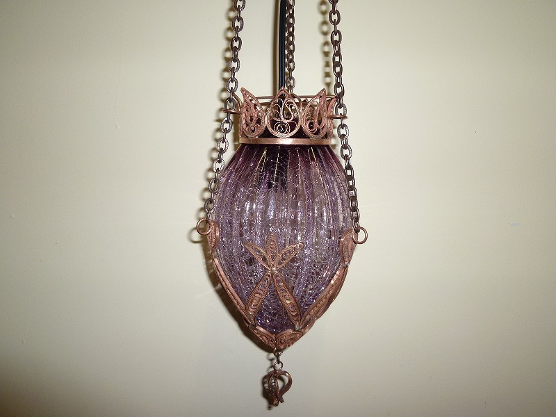 世界中のセレブも愛用、エキゾチックなトルコ製のクラックガラスランプ。クラックとは「ひび割れ」の意味で、このランプにはガラス部にクラック加工を施してあるため、幻想的でやわらかに灯ります。豪華で美麗なあかりを、あなたのお部屋に!古くからトルコに伝わる伝統のデザイン、そしてランプの装飾部には、ひとつひとつ手作業で銅細工をあしらっています。そしてこのリーズナブルなプライス、どれをとっても大満足!お隣に差がつく、世界に1つの逸品です。