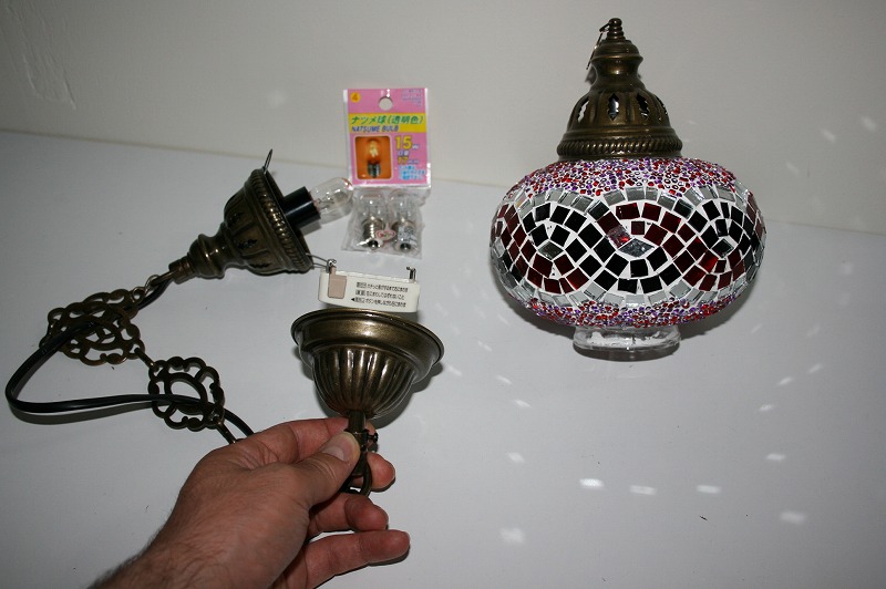 豪華で美麗なあかりを、あなたのお部屋に!古くからトルコに伝わる、伝統のデザイン、モザイクタイルを手作業で施したハンドメイド。そしてこのリーズナブルなプライス、どれをとっても大満足!お隣に差がつく、世界に1つの逸品です。ランプの付け方について