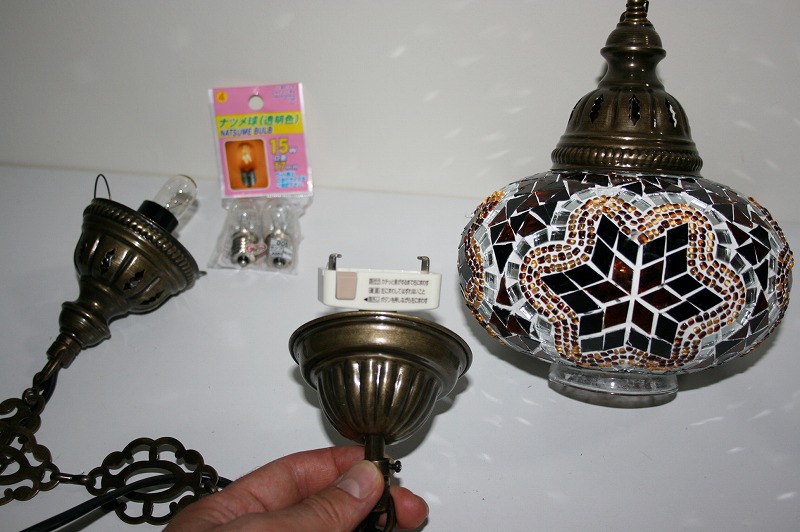 豪華で美麗なあかりを、あなたのお部屋に!古くからトルコに伝わる、伝統のデザイン、モザイクタイルを手作業で施したハンドメイド。そしてこのリーズナブルなプライス、どれをとっても大満足!お隣に差がつく、世界に1つの逸品です。ランプの付け方について