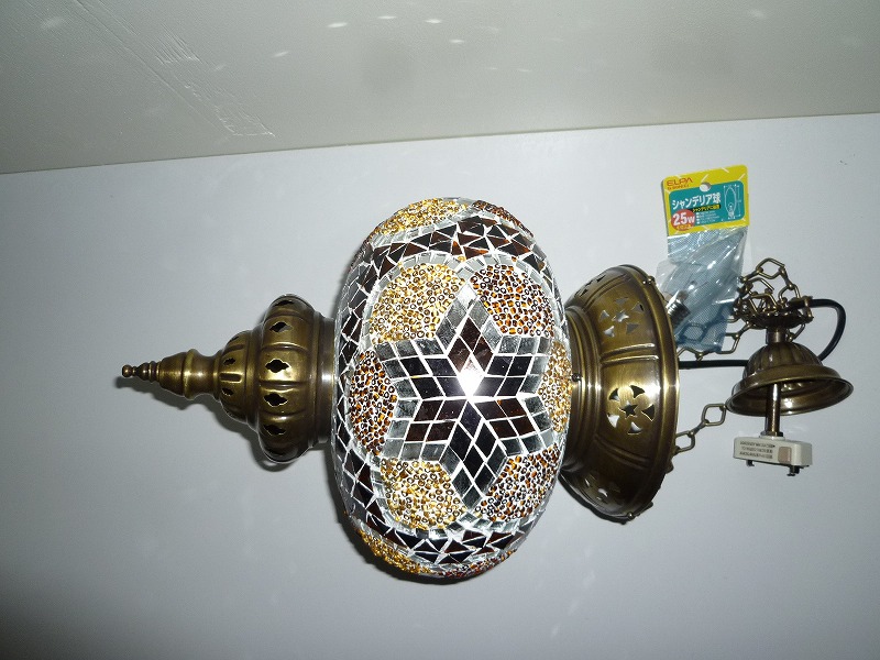 豪華で美麗なあかりを、あなたのお部屋に!古くからトルコに伝わる、伝統のデザイン、モザイクタイルを手作業で施したハンドメイド。そしてこのリーズナブルなプライス、どれをとっても大満足!お隣に差がつく、世界に1つの逸品です。ランプの付け方について