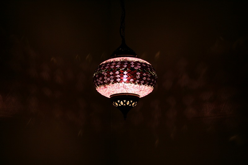豪華で美麗なあかりを、あなたのお部屋に!古くからトルコに伝わる、伝統のデザイン、モザイクタイルを手作業で施したハンドメイド。そしてこのリーズナブルなプライス、どれをとっても大満足!お隣に差がつく、世界に1つの逸品です。ランプの付け方について