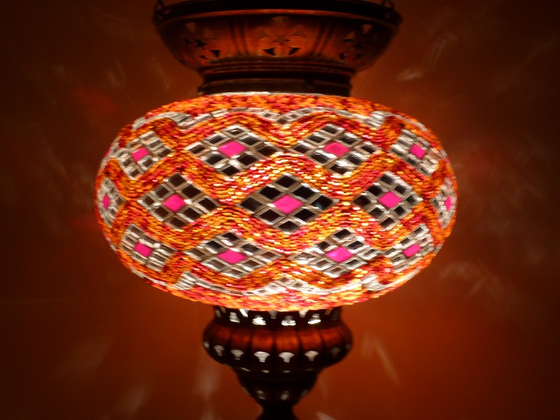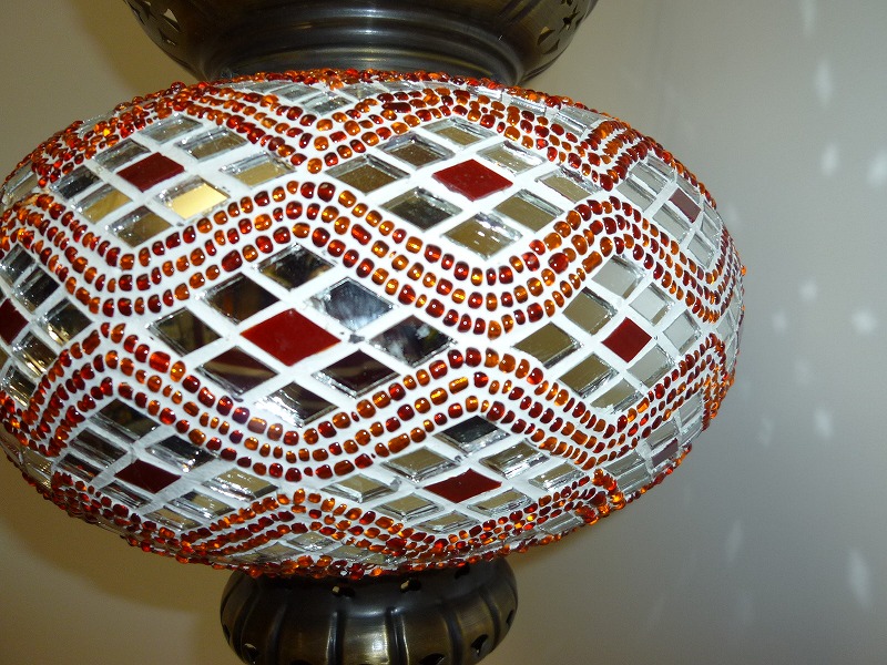 豪華で美麗なあかりを、あなたのお部屋に!古くからトルコに伝わる、伝統のデザイン、モザイクタイルを手作業で施したハンドメイド。そしてこのリーズナブルなプライス、どれをとっても大満足!お隣に差がつく、世界に1つの逸品です。ランプの付け方について