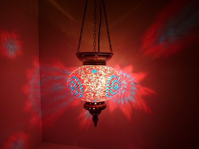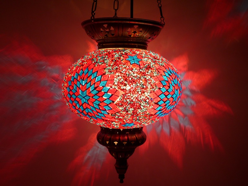 豪華で美麗なあかりを、あなたのお部屋に!古くからトルコに伝わる、伝統のデザイン、モザイクタイルを手作業で施したハンドメイド。そしてこのリーズナブルなプライス、どれをとっても大満足!お隣に差がつく、世界に1つの逸品です。ランプの付け方について