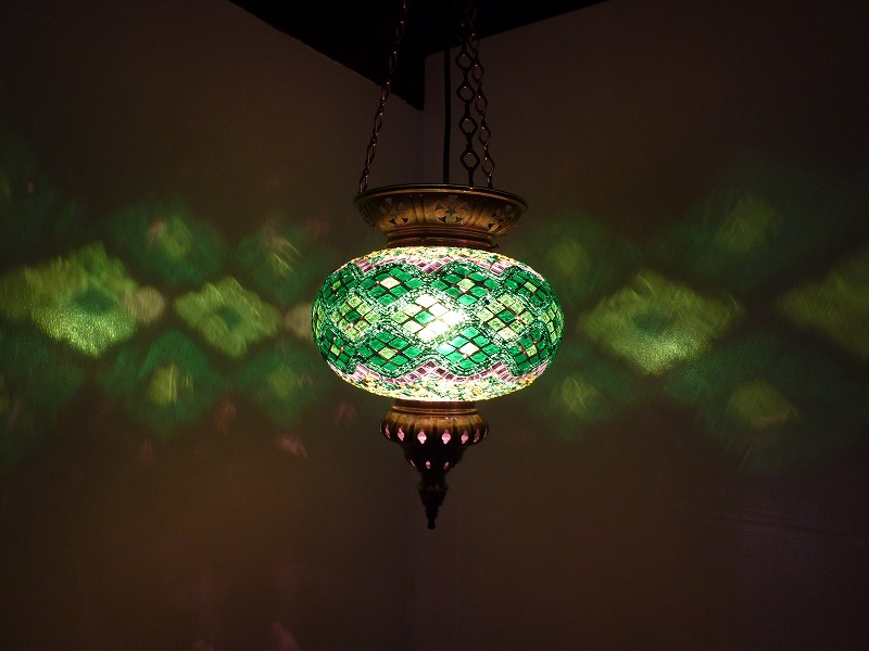 豪華で美麗なあかりを、あなたのお部屋に!古くからトルコに伝わる、伝統のデザイン、モザイクタイルを手作業で施したハンドメイド。そしてこのリーズナブルなプライス、どれをとっても大満足!お隣に差がつく、世界に1つの逸品です。ランプの付け方について