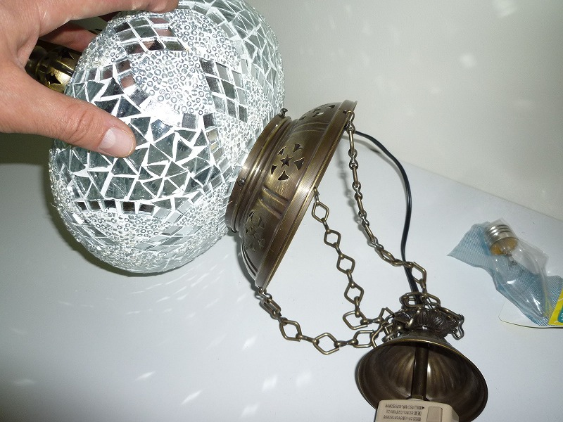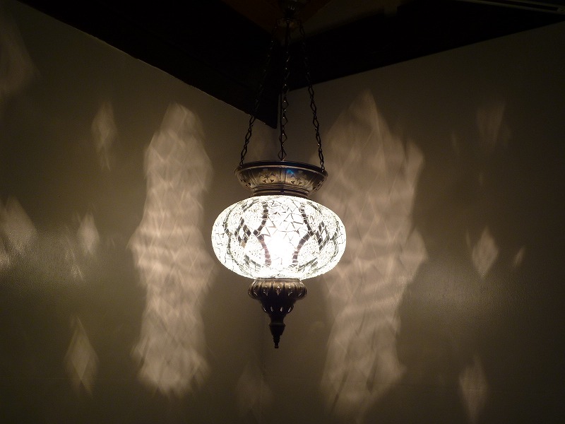 豪華で美麗なあかりを、あなたのお部屋に!古くからトルコに伝わる、伝統のデザイン、モザイクタイルを手作業で施したハンドメイド。そしてこのリーズナブルなプライス、どれをとっても大満足!お隣に差がつく、世界に1つの逸品です。ランプの付け方について