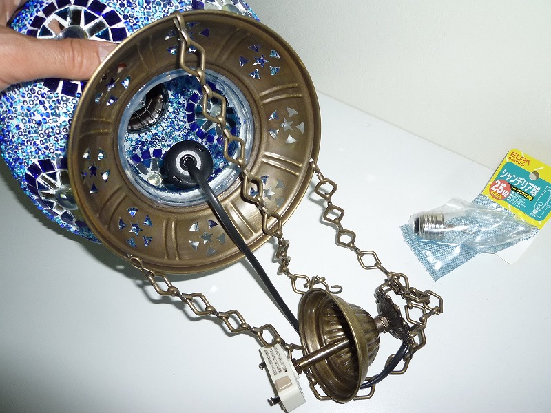 豪華で美麗なあかりを、あなたのお部屋に!古くからトルコに伝わる、伝統のデザイン、モザイクタイルを手作業で施したハンドメイド。そしてこのリーズナブルなプライス、どれをとっても大満足!お隣に差がつく、世界に1つの逸品です。ランプの付け方について