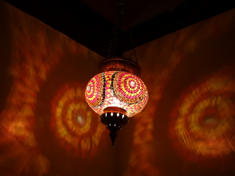 豪華で美麗なあかりを、あなたのお部屋に!古くからトルコに伝わる、伝統のデザイン、モザイクタイルを手作業で施したハンドメイド。そしてこのリーズナブルなプライス、どれをとっても大満足!お隣に差がつく、世界に1つの逸品です。ランプの付け方について
