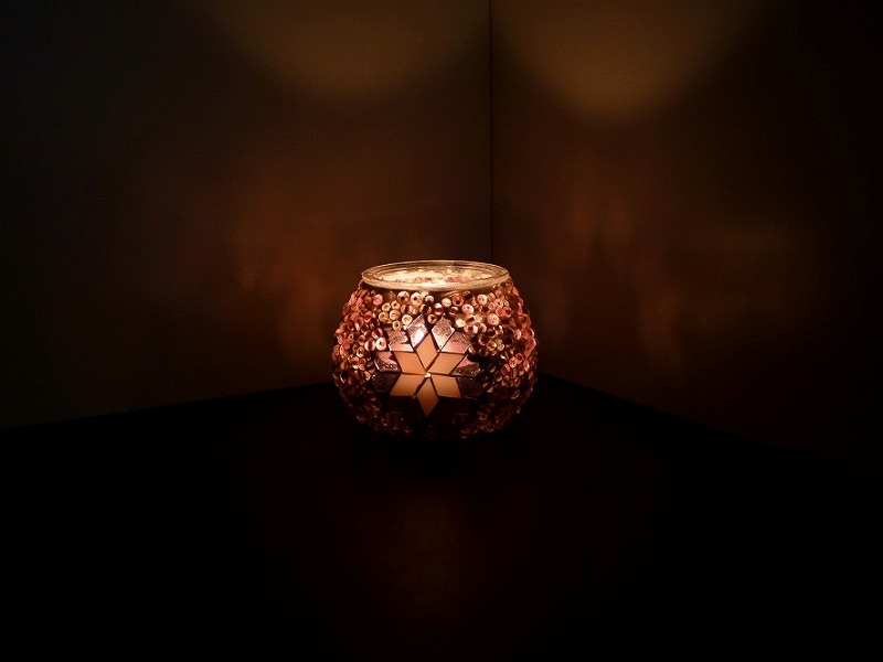 [cans11]グラスの周りにカットしたガラスやビーズを手作業で施したハンドメイド。柔らかな光でリラックス空間を素敵に演出してくれます。アロマキャンドルを入れてお部屋に置いたり、花瓶や小物入れとしてもお使いいただけます。トルコでもキャンドルホルダーとしてだけではなく、いろいろな使い方をしています。