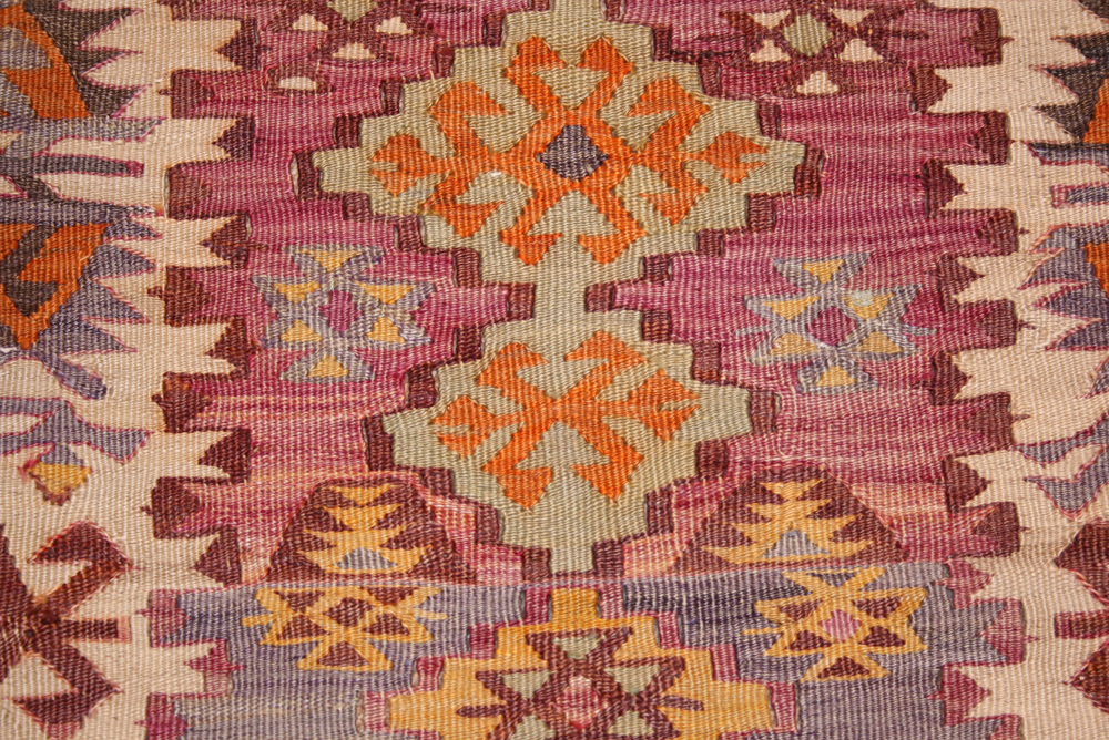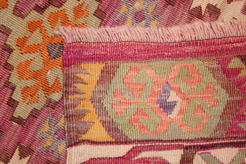 20~40年前のものです。繊細な織りと、大胆なデザインデと色彩。一枚あるだけで、オリジナリティあふれる空間をつくり出してくれます。本キリムに使用の糸は、すべて草木染めです。機械織りとは異なり、暖かみが伝わるハンドメイドです。