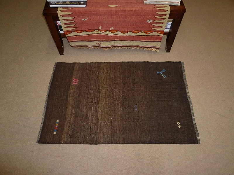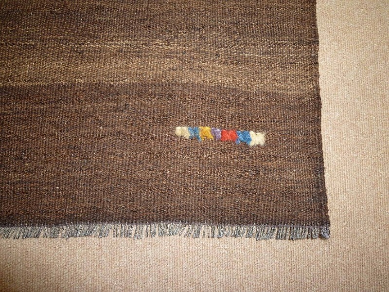 [cuv12]小麦や豆など大切なものを入れるために織られたキリム。このキリムは、袋の裏側に当たる部分です。染めていない羊毛の色を生かして織られており、自然な羊毛の濃淡を楽しめる一品です。モダンな色合いで、合わせやすいキリム。しっかりとした織りで、比較的よごれにくいので、いろいろな場所にお使いいただけます。使われた様子はなく、ほとんどダメージはありません。ふさの根元の部分は、横糸が出てこないように丁寧に仕上げています。リーズナブルなプライスでご満足いただけると思います。
