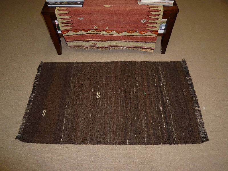 [cuv17]小麦や豆など大切なものを入れるために織られたキリム。このキリムは、袋の裏側に当たる部分です。染めていない羊毛の色を生かして織られており、自然な羊毛の濃淡を楽しめる一品です。モダンな色合いで、合わせやすいキリム。しっかりとした織りで、比較的よごれにくいので、いろいろな場所にお使いいただけます。使われた様子はなく、ほとんどダメージはありません。ふさの根元の部分は、横糸が出てこないように丁寧に仕上げています。リーズナブルなプライスでご満足いただけると思います。