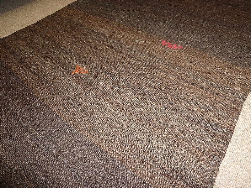 [cuv38]小麦や豆など大切なものを入れるために織られたキリム。このキリムは、袋の裏側に当たる部分です。染めていない羊毛の色を生かして織られており、自然な羊毛の濃淡を楽しめる一品です。モダンな色合いで、合わせやすいキリム。しっかりとした織りで、比較的よごれにくいので、いろいろな場所にお使いいただけます。使われた様子はなく、ほとんどダメージはありません。ふさの根元の部分は、横糸が出てこないように丁寧に仕上げています。リーズナブルなプライスでご満足いただけると思います。