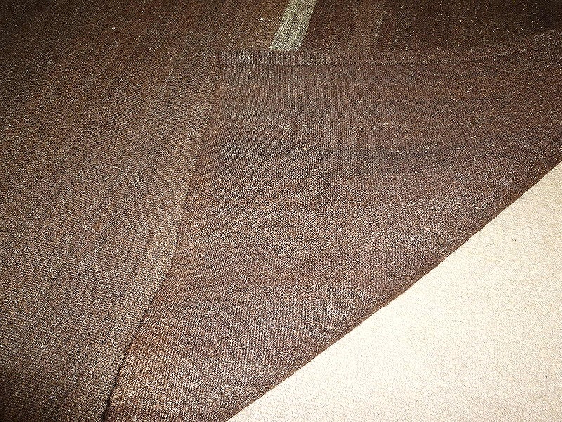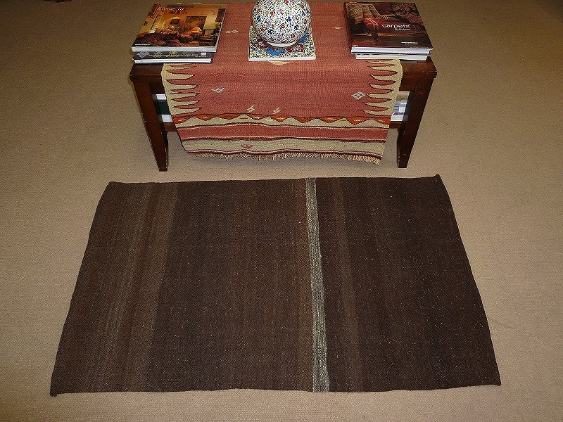 [cuv52]小麦や豆など大切なものを入れるために織られたキリム。このキリムは、袋の裏側に当たる部分です。染めていない羊毛の色を生かして織られており、自然な羊毛の濃淡を楽しめる一品です。モダンな色合いで、合わせやすいキリム。しっかりとした織りで、比較的よごれにくいので、いろいろな場所にお使いいただけます。使われた様子はなく、ほとんどダメージはありません。ふさの根元の部分は、横糸が出てこないように丁寧に仕上げています。リーズナブルなプライスでご満足いただけると思います。