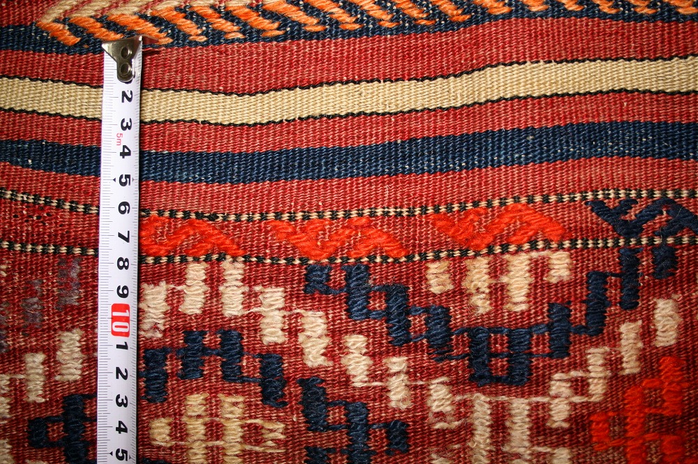 50~60年前のものです。繊細な織りと、大胆なデザインデと色彩。一枚あるだけで、オリジナリティあふれる空間をつくり出してくれます。本キリムに使用の糸は、すべて草木染めです。機械織りとは異なり、暖かみが伝わるハンドメイドです。