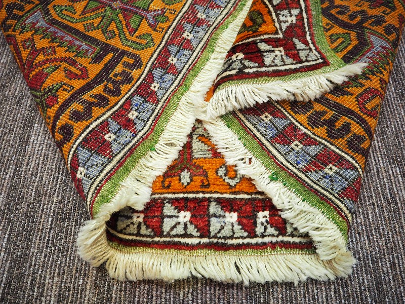 トルコのダブル結びの織りで、ツヤがあり、ウールもとても柔らかく、毛羽立ちもほとんどありません。