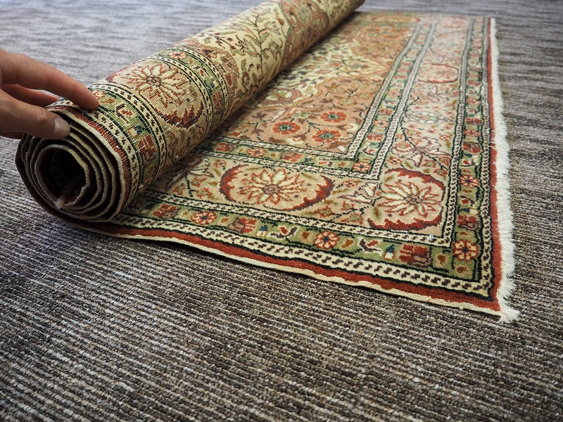 トルコのダブル結びの織りで、ツヤがあり、ウールもとても柔らかく、毛羽立ちもほとんどありません。