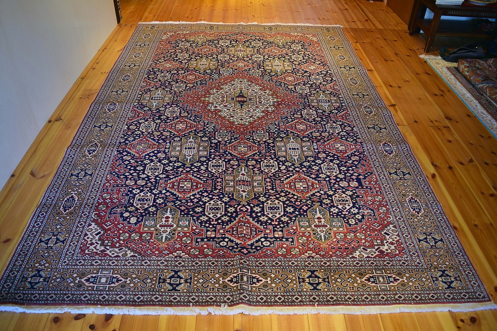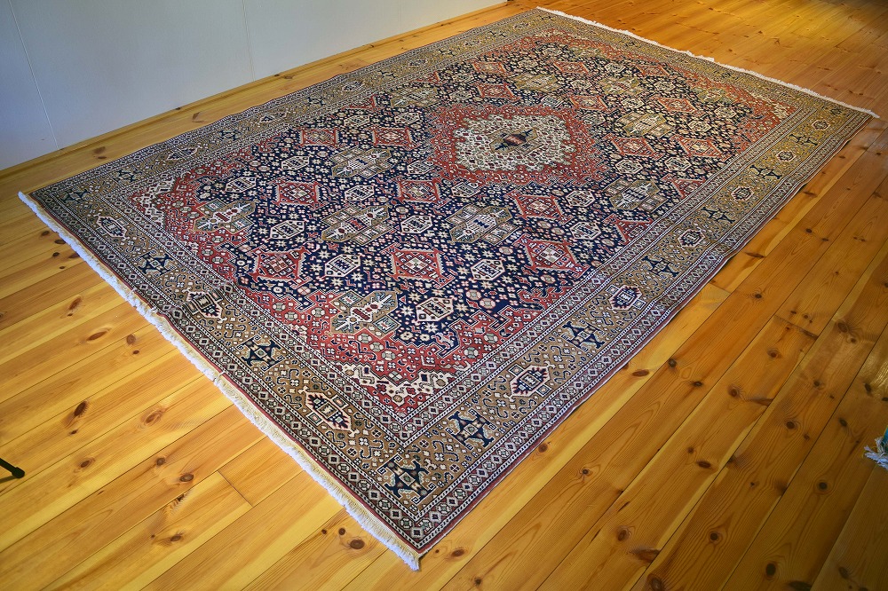 トルコのダブル結びの織りで、ツヤがあり、ウールもとても柔らかく、毛羽立ちもほとんどありません。