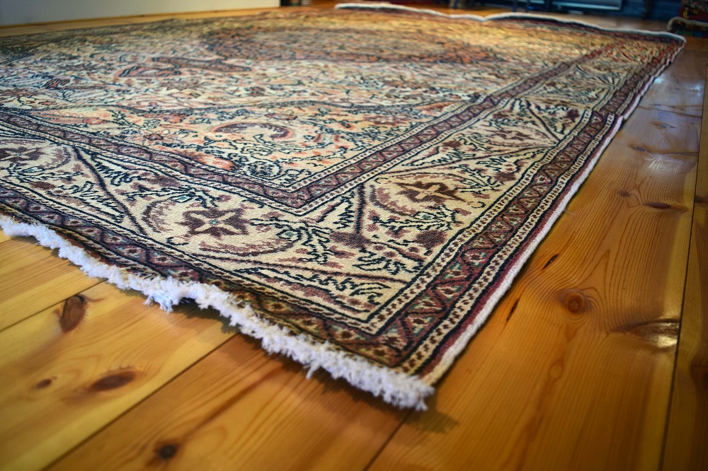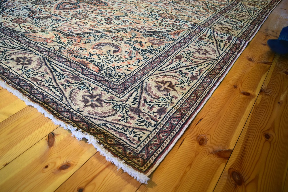 トルコのダブル結びの織りで、ツヤがあり、ウールもとても柔らかく、毛羽立ちもほとんどありません。