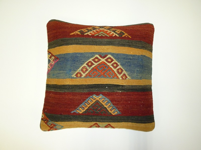 キリムクッションカバーオールドキリムを使用して作られた、エキゾチックなクッションカバー。オールドキリムの素敵な部分をカットして使用されています。(表面はオールドキリム、裏側はコットンの布地です)お手持ちの家具やキリムと組み合わせてお楽しみください。このタイプのものは、なかなか数が少な く、品質・価格・品揃え共に日本国内屈指であると自負しています。この商品は現地でクリーニングしてから輸入していますのでご安心ください。