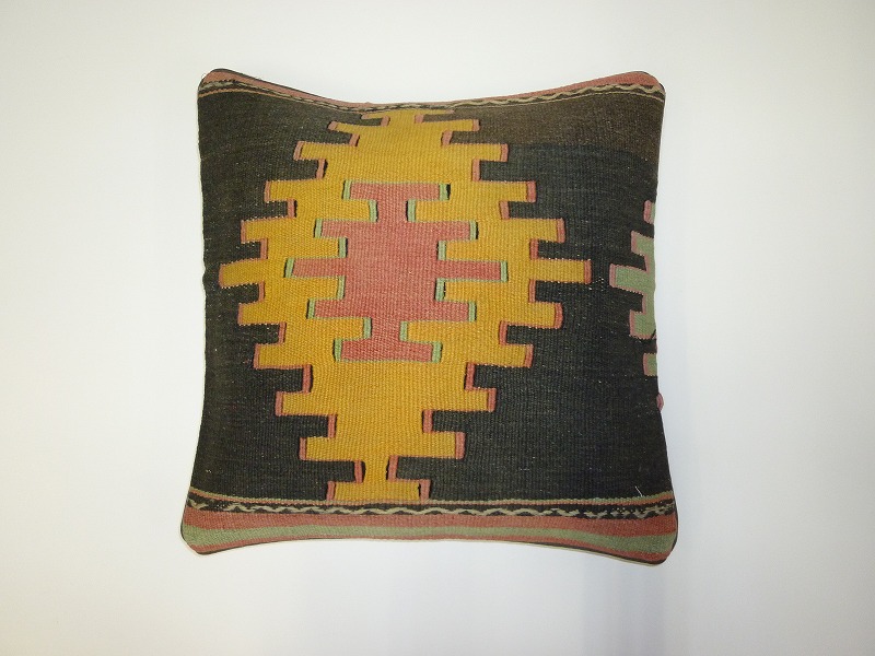 キリムクッションカバーオールドキリムを使用して作られた、エキゾチックなクッションカバー。オールドキリムの素敵な部分をカットして使用されています。(表面はオールドキリム、裏側はコットンの布地です)お手持ちの家具やキリムと組み合わせてお楽しみください。このタイプのものは、なかなか数が少な く、品質・価格・品揃え共に日本国内屈指であると自負しています。この商品は現地でクリーニングしてから輸入していますのでご安心ください。
