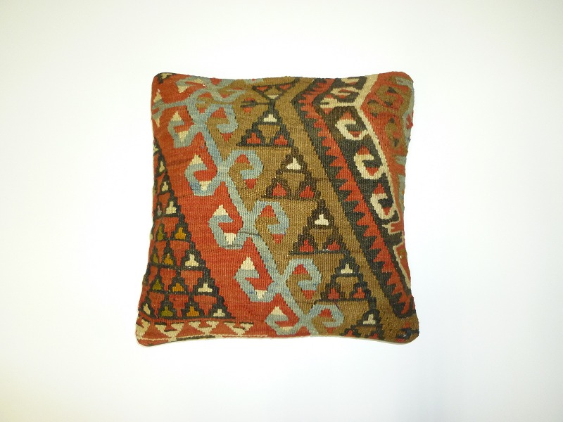 キリムクッションカバーオールドキリムを使用して作られた、エキゾチックなクッションカバー。オールドキリムの素敵な部分をカットして使用されています。(表面はオールドキリム、裏側はコットンの布地です)お手持ちの家具やキリムと組み合わせてお楽しみください。このタイプのものは、なかなか数が少な く、品質・価格・品揃え共に日本国内屈指であると自負しています。この商品は現地でクリーニングしてから輸入していますのでご安心ください。