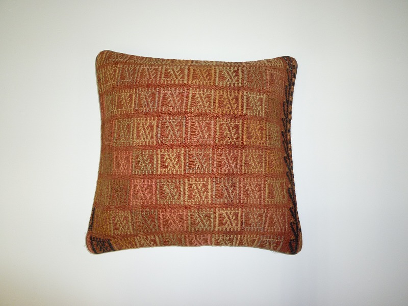 キリムクッションカバーオールドキリムを使用して作られた、エキゾチックなクッションカバー。オールドキリムの素敵な部分をカットして使用されています。(表面はオールドキリム、裏側はコットンの布地です)お手持ちの家具やキリムと組み合わせてお楽しみください。このタイプのものは、なかなか数が少な く、品質・価格・品揃え共に日本国内屈指であると自負しています。この商品は現地でクリーニングしてから輸入していますのでご安心ください。