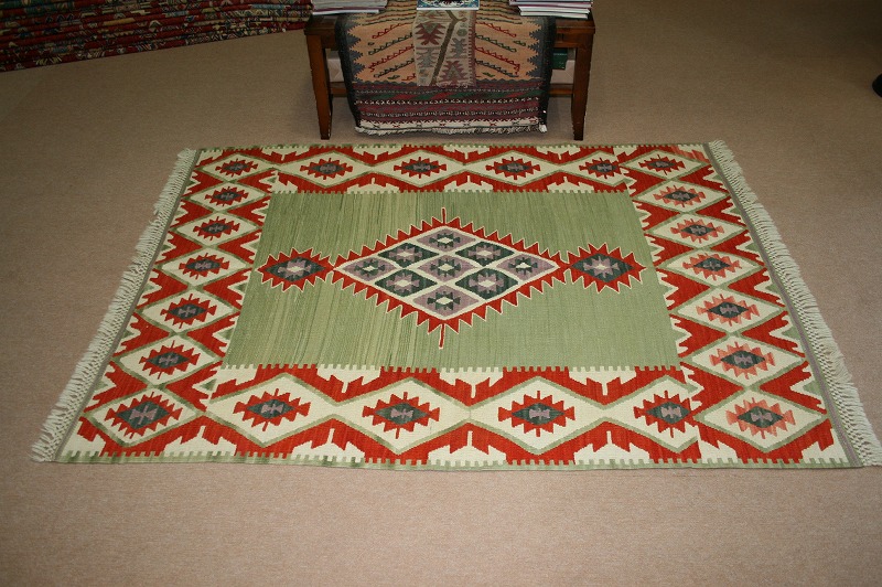 ●サイズ:縦179×横127(cm)  ●材質 ウール×ウール  ●年 代:新しいキリム ●産地:トルコ/カイセリ