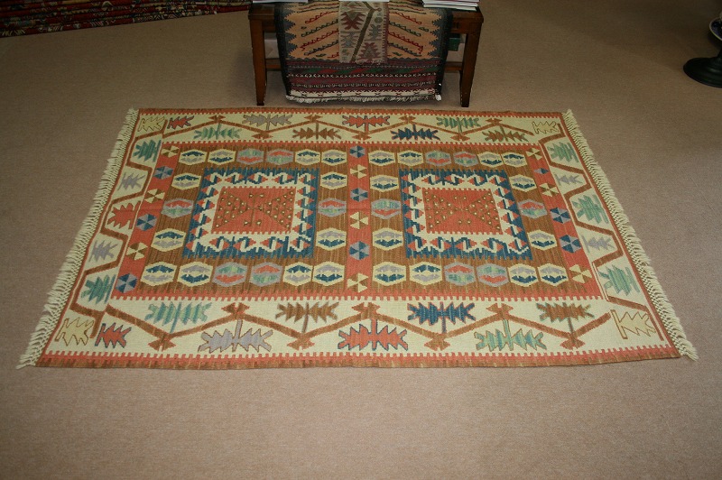 ●サイズ:縦178×横126(cm)  ●材質 ウール×ウール  ●年 代:新しいキリム ●産地:トルコ/カイセリ