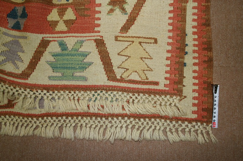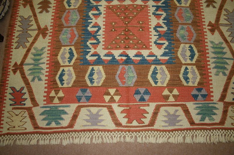 スタンダードキリムより、ワンランク上のカイセリキリム。カイセリ地方で織られているキリムです。上質のウールで織られているため、手触りもやわらか。細かなモチーフがぎっしり詰め込まれ、繊細に織られていて、古いキリムの色合いに合わせたパステル調の色合いが特徴です。機械織りとは異なり、暖かみが伝わるハンドメイド。このタイプのものは、なかなか数が少なく、品質・価格・品揃え共に、日本国内屈指であると自負しています。