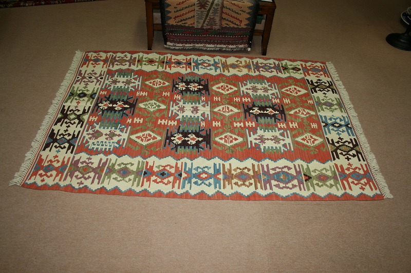 ●サイズ:縦182×横127(cm)  ●材質 ウール×ウール  ●年 代:新しいキリム ●産地:トルコ/カイセリ